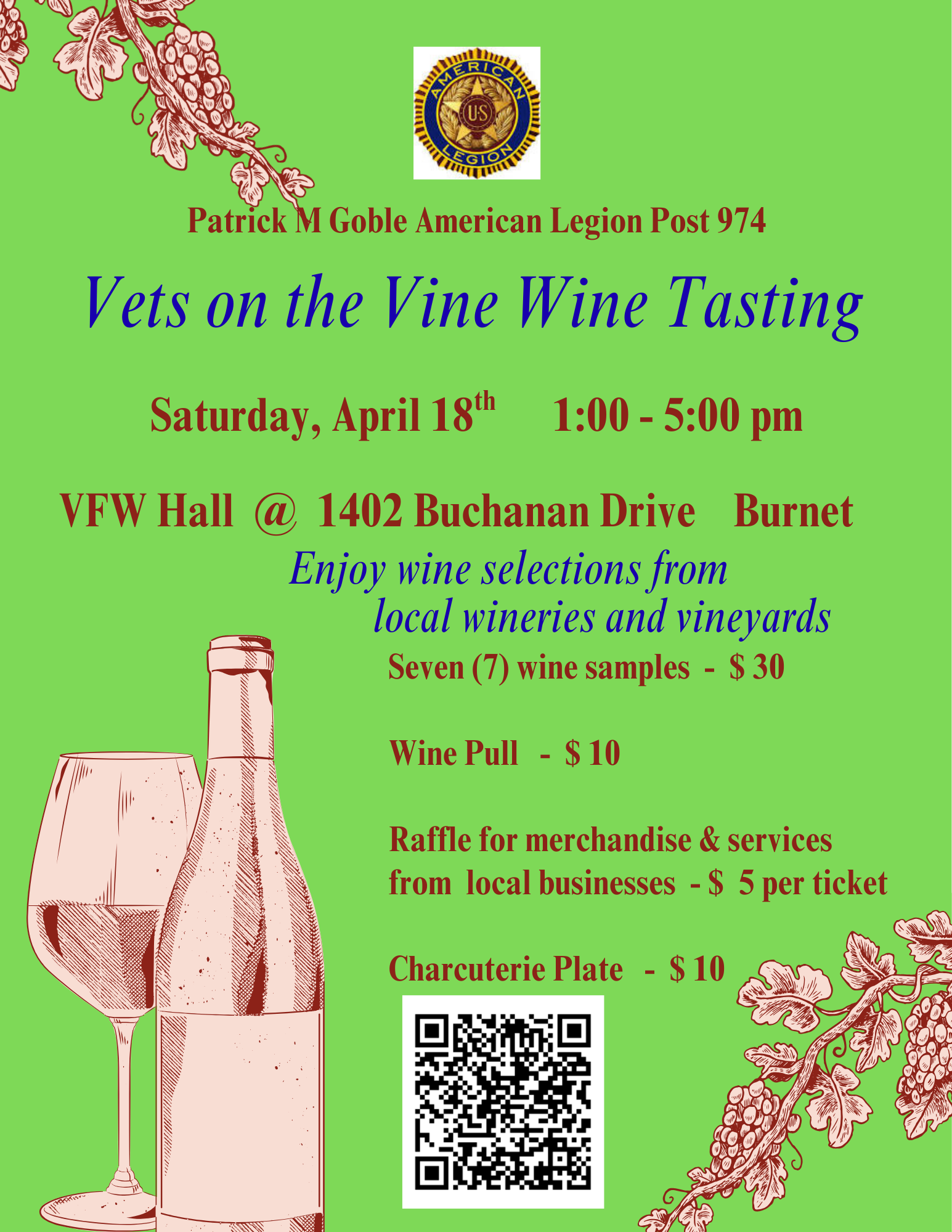 April 9-12, 2026 Burnet Bluebonnet Festival April 11, 2026 Burnet County Rodeo Demolition Derby at Burnet County Rodeo grounds April 14, 2026 Monthly general Meeting at 1800 April 18, 2026 Annual Vets on the Vine…
